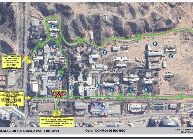 El inicio de la semana comenzará en la sede central de la Universidad Nacional del Comahue (UNCo) la obra de cerramiento perimetral y control de acceso, un proyecto que apunta a mejorar la seguridad vial de los y las estudiantes.