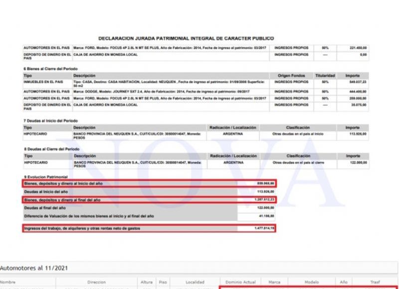En la declaración jurada que presentó en la Oficina Anticorrupción dijo que, al principio del año 2020, él tenía dinero por 859 mil pesos y a fin de año por 1.300.000 pesos. También sostuvo que ganó por rentas y otros trabajos, una suma de 1.477.000 pesos. Allí está falseando la declaración jurada.