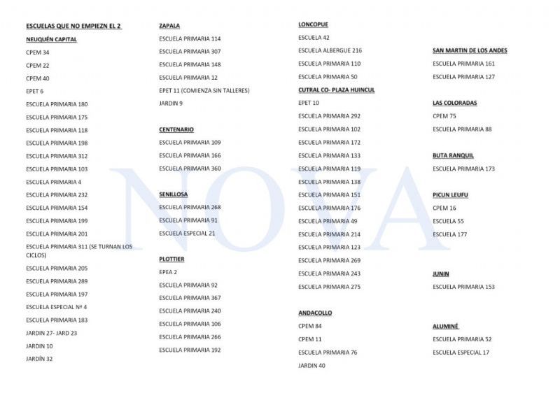 En contrapartida, Llancafilo opinó que “a último momento, en algunas escuelas decidieron empezar mañana el ciclo lectivo aduciendo cuestiones menores como el faltante de auxiliar, o situación con el refrigerio, partidas que fueron aumentadas en un 50 por ciento; o voladura de la tapa de un tanque de agua o el faltante de una cerradura. Cuando uno ve eso, ve gente que no se quiere sumar a la gran noticia que este 2 de marzo los chicos estén en las aulas”.