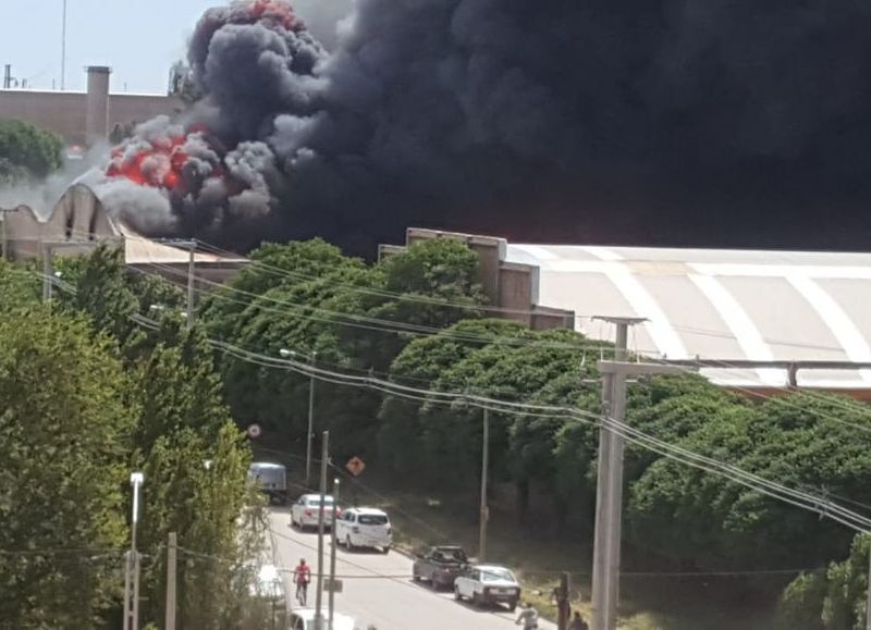 Posteriormente se supo que se trataba de un alarmante fuego que provocó daños en la planta de empaque de Cervi, en calles Obrero Argentino y Agüado, y sus inmediaciones. Llamas intensas e importante columna de humo.