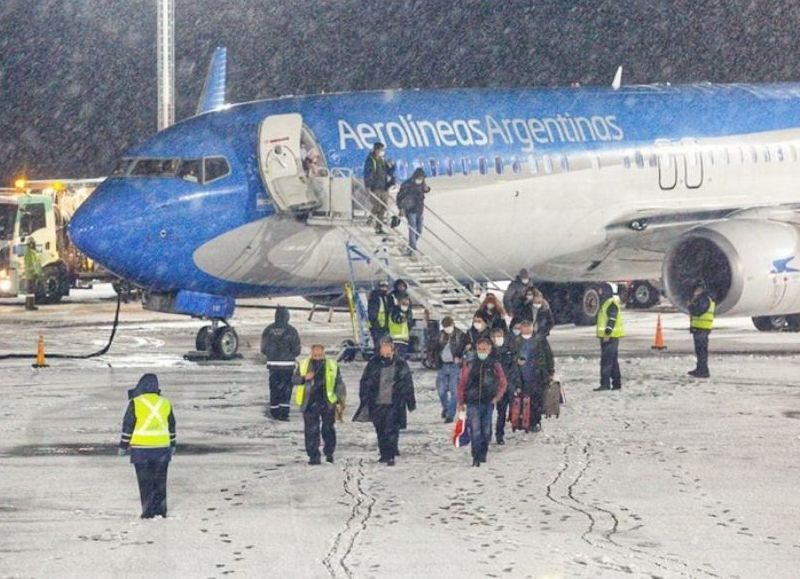 El avión, que llegó con pasaje completo, tocó la pista del aeropuerto Aviador Campos (también conocido como de Chapelco) a las 7.50. Los turistas fueron recibidos por el gobernador Omar Gutiérrez y por una copiosa nevada como presagio de otra temporada récord en la bella aldea de montaña. Luego hubo una conferencia de prensa en la que también participaron el presidente de Aerolíneas Argentinas, Pablo Ceriani; el intendente local, Carlos Saloniti y su par de Junín de los Andes, Carlos Corazini y el ministro de Turismo, Sandro Badilla, entre otras autoridades.