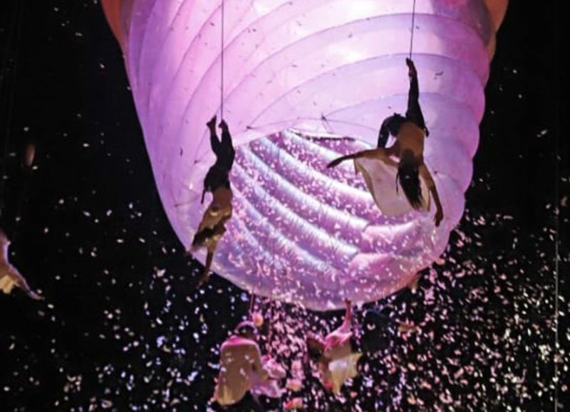 La magia de la navidad comenzó en la noche del domingo, en un espectáculo de danza aérea en el centro de la ciudad de Neuquén y convocó a una multitud de gente que disfrutó de un show con más de 70 artistas locales en vivo por la compañía local élevé danza.