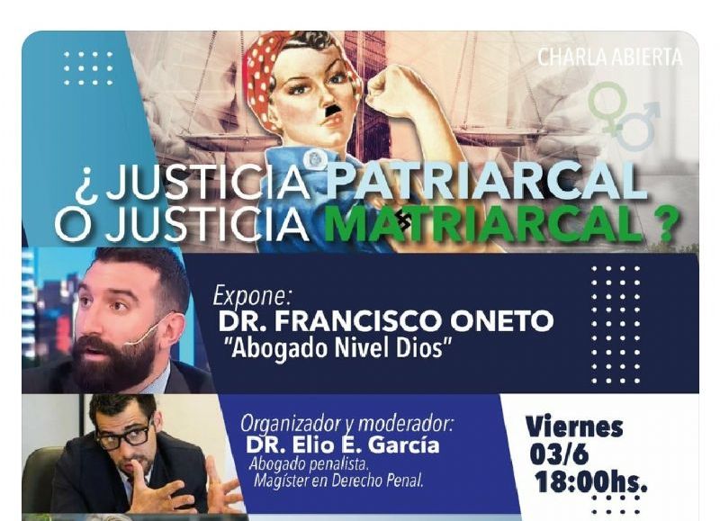 En el afiche se explicita que disertarán Francisco Oneto, que es indicado como "abogado nivel Dios". El organizador y moderador es el abogado neuquino Elio García, quien -entre muchos otros casos- fue abogado de Alfredo Escobar, femicida de Cielo López. La coordinadora de la actividad es Nadia Márquez, abogada y concejal de Democracia Cristiana, además de referente local de la agrupación Unidad Provida y la iglesia Jesús Es Rey.