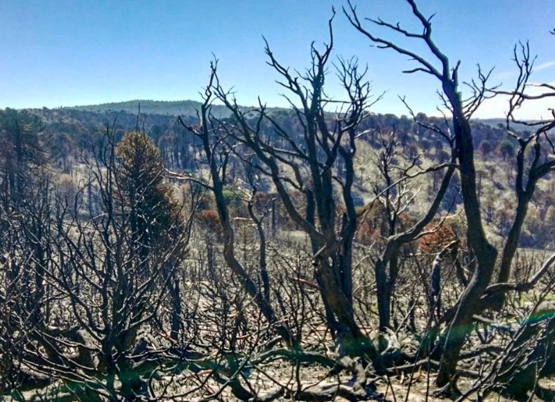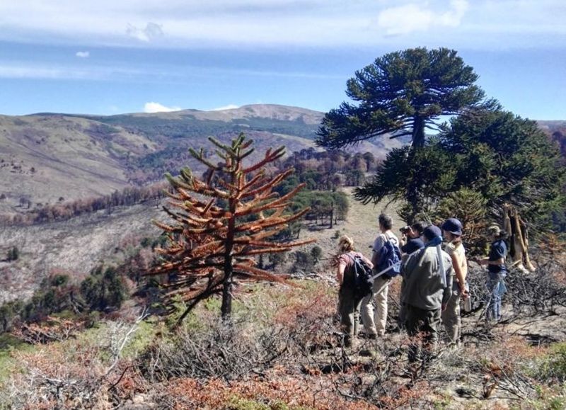 “Las araucarias afectadas presentaron una categorización más diversa. Reconocimos tres tipos de árboles afectados: ‘araucarias chamuscadas’, que presentan parte de la copa sin quemar; ‘araucarias quemadas con yemas verdes’, totalmente quemadas, con el follaje quemado aún retenido sobre las ramas y con la particularidad de presentar yemas verdes en los extremos de las ramas; ‘araucarias calcinadas’, sin retención de follaje y sin yemas verdes y, en muchos casos, con presencia de un exudado resinoso por los troncos”, se indicó.