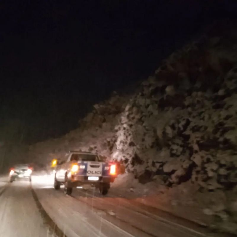 Como consecuencia de la cantidad de nieve sobre la ruta, hay vehículos cruzados sobre la calzada y estacionados en la banquina sin poder avanzar, por lo que la policía y seguridad vial se encuentran trabajando en el lugar.