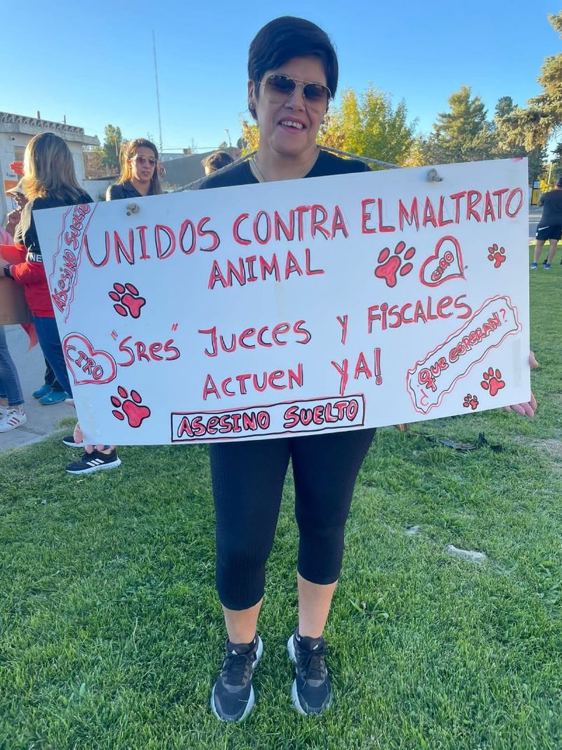 Durante la marcha indicó que el perro era de su novio Mauro, y pidió que se investigue la causa e indicó que se sumarán más denuncias de vecinos contra del hombre acusado de dispararle a su mascota.